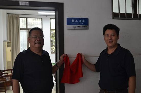 在热烈掌声中,朱主席与方书记为TapTap点点“教工之家”揭牌。