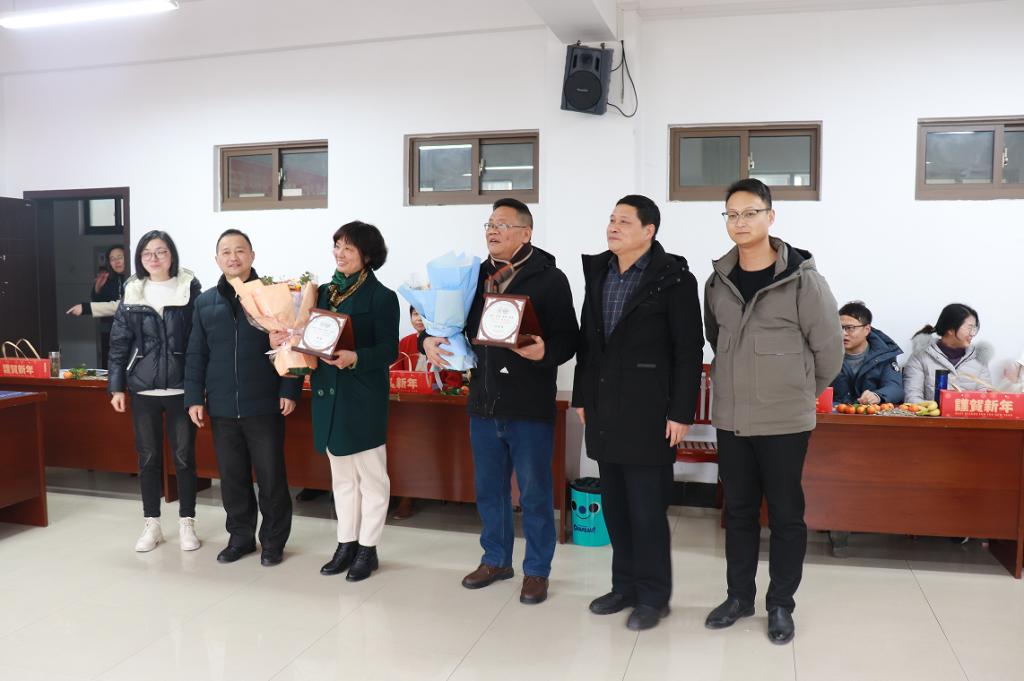 经理汪和平向大家介绍了两位荣休教师的基本情况,并代表公司向他们表达了深情的感谢和真挚的祝福,书记汪春胜代表公司颁发了荣休纪念牌。教师代表陈梦凯、刘林分别向方承武和陈荣献花。
