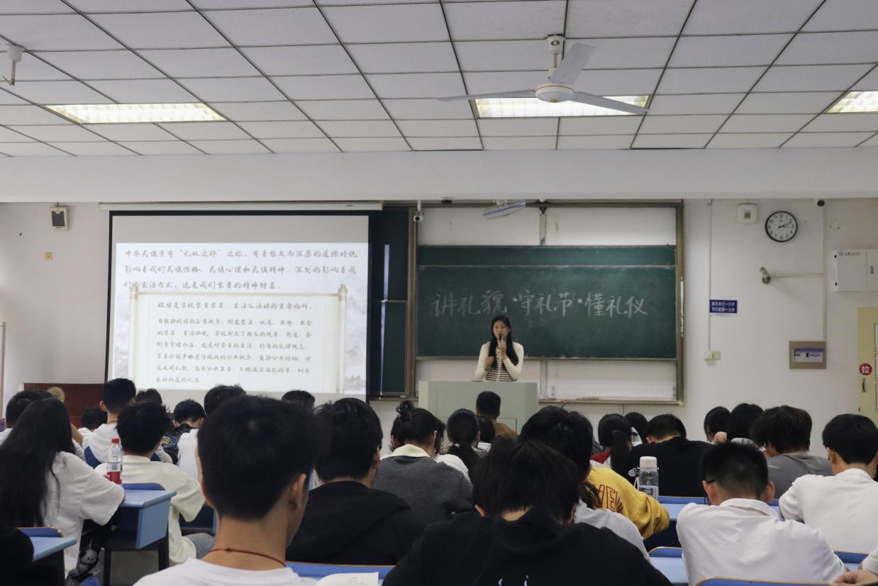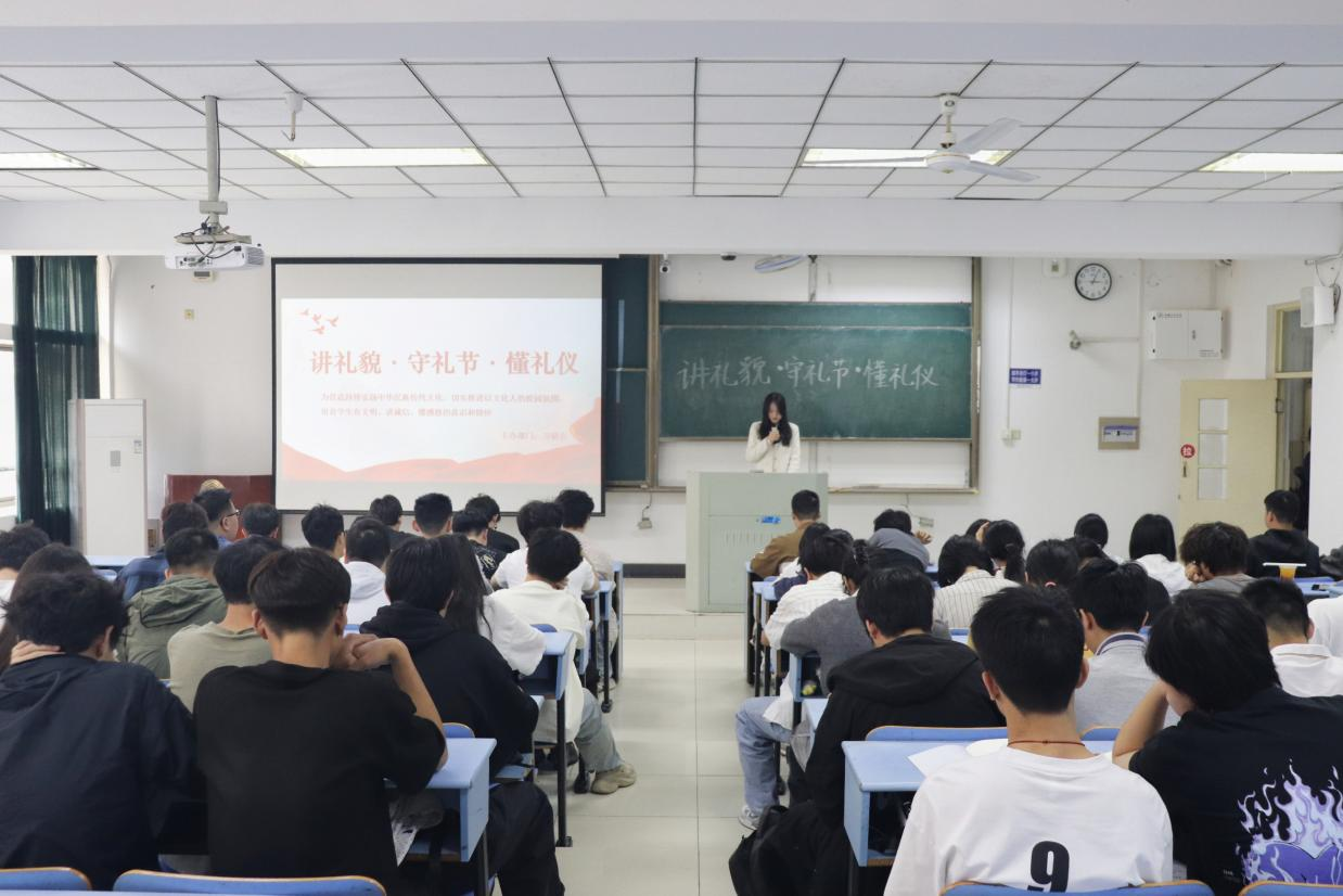 活动中,朱仔仪化身传统文化“传播使者”,援引《礼记》《周礼》等古代典籍中关于礼仪的经典论述,结合现代校园生活场景,如师生相处、同学交往等,深入阐释礼貌、礼节和礼仪的内涵。在“礼仪镜像”沉浸式互动环节,通过现场播放精心制作的《礼在朝夕》系列微视频,以镜头捕捉校园生活中的真实场景:课堂上专注聆听、举手发言的学习规范,食堂有序归置餐盘的用餐礼仪,校园小径上师生相遇时微笑致意、主动问好的社交礼节等,这些鲜活的画面将抽象的礼仪准则转化为可感可知的日常实践。在分享环节中,工程造价243班李广政同学以亲身经历诠释礼仪力量:“当我怀着谦逊之心向学长学姐请教专业难题时,礼貌的措辞、专注的倾听不仅让我收获了细致解答,更意外得到了学长学姐主动分享的学习资料。这份善意的馈赠,正是礼仪传递出的动人力量。”