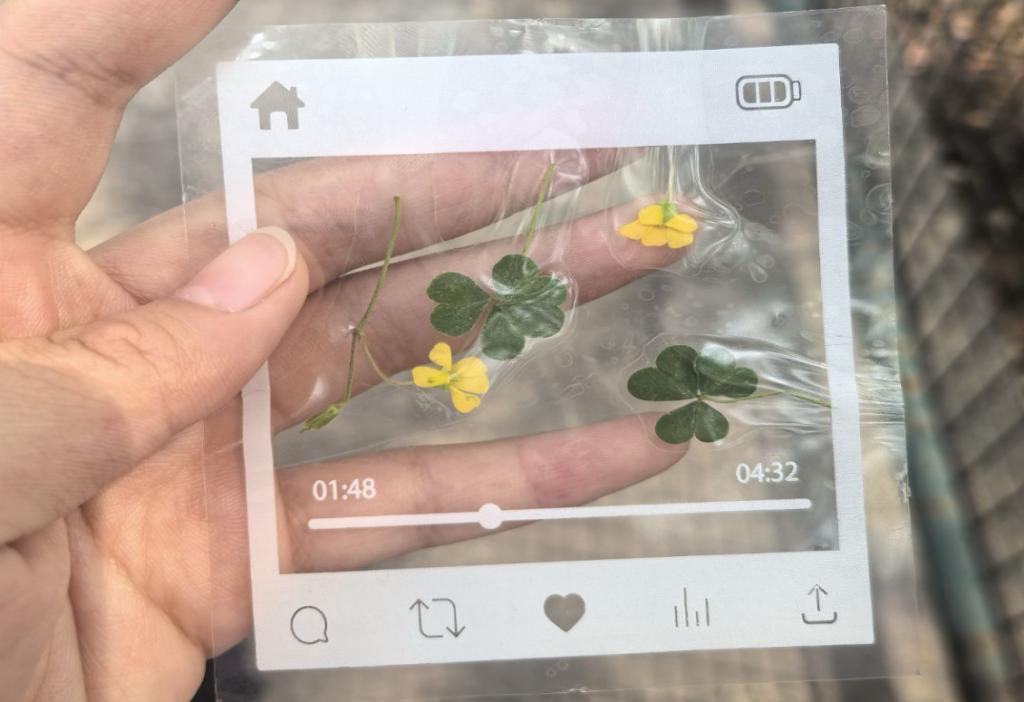 本次活动通过视觉与触觉的双重体验,引导员工专注当下、感受自然。现场准备了DIY书签制作工具,同学们利用校园内采集的合欢花、含羞草叶等植物素材,创作出独一无二的书签。活动现场设置了“自然故事分享角”,同学们围坐在一起,讲述采集植物时的趣事:有人在清晨的露水未干时,在图书馆旁的合欢树下收集飘落的粉白花瓣;有人为了寻找完整的含羞草叶,蹲在实验楼后的草丛前等待半小时…… 这些微小而美好的瞬间,串联成一场关于“专注当下”的集体疗愈。“当我的指尖触碰到新鲜叶片的湿润感,突然意识到自己已经很久没有这样慢下来感受生活了。”数应231 班的曹蕾展示着书签上的叶脉书签,“叶脉的纹路像树的年轮,仿佛在提醒我:成长需要时间,不必焦虑追赶。”