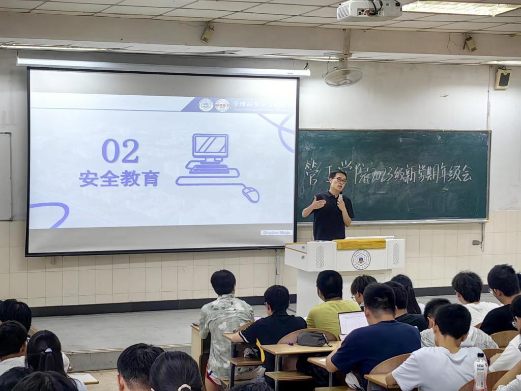 会上,曹宇就近期高发的电信诈骗案件开展专项警示教育,结合“游戏代打”“刷单返利”等典型实例,提醒同学们务必提高网络安全防范意识,做到“不轻信、不转账、不泄露”。同时,曹宇强调宿舍安全纪律,明确禁止使用违规电器。通过对上一学期各专业学科成绩的系统分析,曹宇鼓励同学们要认真总结、脚踏实地、严守课堂纪律。钱丹丹基于上一届毕业生在考研、就业等方面的实际数据,建议同学们要尽早明确个人目标,科学规划老员工活,强调提前准备和持续努力的重要性。
