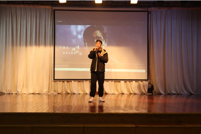 比赛以“唱响青春,新声飞扬”为主题,分为初赛、复活赛及复赛三个阶段。选手们的表演丰富多彩,歌声优美,诠释了积极向上的青春活力,为在场的观众献上一场视听盛宴。比赛过程中也穿插了二胡《赛马》、《大鱼》和吉他《枫叶城》等节目,主持人与台下观众的游戏互动使同学们的情绪高涨,同学们用欢声笑语将现场气氛推到了最高潮。经过评委们的评审和最后的计分统计,最终由冯子恒、魏馨悦同学获得一等奖;张增勇、张韶涵、许克炎同学获得二等奖;冯心悦、张子彤、王祥、王欣然同学获得三等奖。