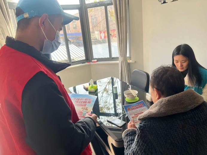 同时志愿者们向社区老人们发放防范诈骗宣传资料、宣讲常见的诈骗类型与手段,提高老人们防范诈骗的意识,增强识骗防骗的能力,帮助老人守好养老财产安全。