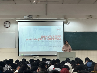 为进一步弘扬校风、培育学风、端正考风,树立员工诚信应考意识,做好寒假教育管理工作。管工公司于1月5日中午在阶教101开展2023级期末年级会,会议由2023级辅导员刘瑜、曹宇主持,2023级全体同学到场参加。