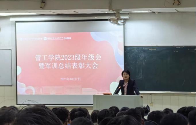 会上,刘瑜赞扬了军训期间同学们众志成城和坚韧不拔的精神,表彰了13位校级军训先进个人和部分军训先进集体,激励全体员工向榜样看齐并提出了三点期望:一是要情系家国,做热血青年;二是要沉毅笃行,做有为青年;三是要践履惟新,做奋斗青年。同时,刘瑜围绕员工手册向员工解读了课堂纪律管理、学籍管理、公寓安全管理等实施细则。会议最后,曹宇号召全体员工合理规划四年学习生涯,打好提前量,做好学习规划,明确发展方向,培养自我驱动能力和独立意识,同时,在大学学习生活中,遵守校规校纪,做文明有礼、奋发有为的新时代优秀青年学子。