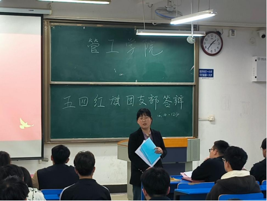 通过支部自主申请、申报材料初评,共9个团支部入围评选答辩会。答辩现场,各团支部围绕制度规范、日常工作、阵地建设、特色活动开展等方面总结汇报上一年度工作开展情况,重点突出支部在创新创业及第二课堂活动的特色举措,彰显了一年以来的工作成绩和特色。评委结合现场答辩表现、团支书工作手册、班级材料等对各支部进行评分。答辩会后,赵玉婷充分肯定了各团支部一年来的工作成果,同时强调各团支部要对标校、院优秀团支部,落细、落实支部“8+”要求,多以支部为单位开展特色主题实践活动,服务青年员工成长,努力做好党的助手和后备军。