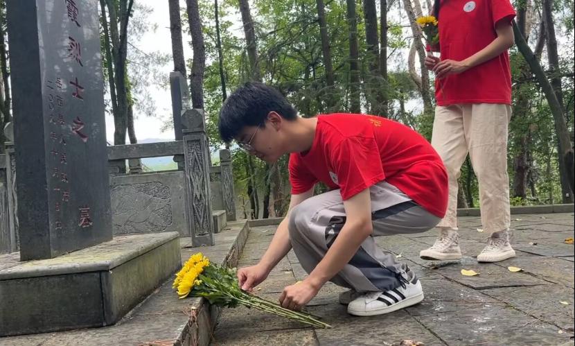 在参观完纪念馆之后,队员们来到烈士墓群进行献花活动,并对着烈士墓群鞠躬默哀,向长眠于此的先烈们表达最崇高的敬意和深深的怀念。他们纷纷表示,将会以革命先烈为荣,铭记历史,传承红色基因,弘扬红色精神,为实现中华民族伟大复兴的中国梦而奋斗。