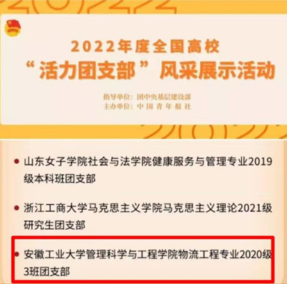 近日,由团中央基层建设部指导,中国青年报社开展的2022年度高校“活力团支部”风采展示活动结果公布,经过校内选拔、校级展示、省级展示、全国展示等环节,TapTap点点物流工程专业2020级3班团支部入选2022年度全国高校“活力团支部”最具贡献度TOP100榜。