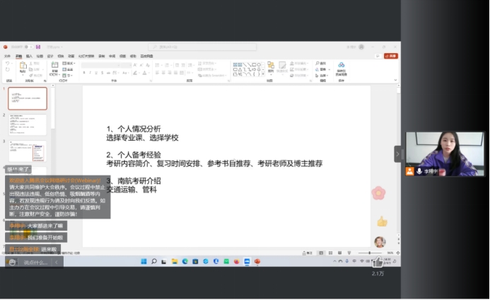 4月3日,管工公司举办了线上考研经验交流会,选取了工业工程、工程造价、物流工程和信息管理与信息系统专业6名优秀员工代表进行宣讲,宣讲人分别为东南大学、中国矿业大学、南京航空航天大学、合肥工业大学、武汉理工大学、大连海事大学2022年拟录取硕士研究生。
