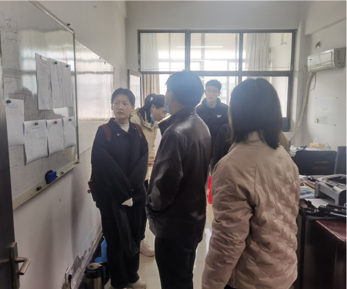 学工部领导先后走访了辅导员办公室和公司心理工作站,赵颖从全体人员值守情况、疫情防控措施落实、员工信息摸排、晨午晚检落实、员工线上学习状态以及毕业班就业情况等方面进行了汇报。