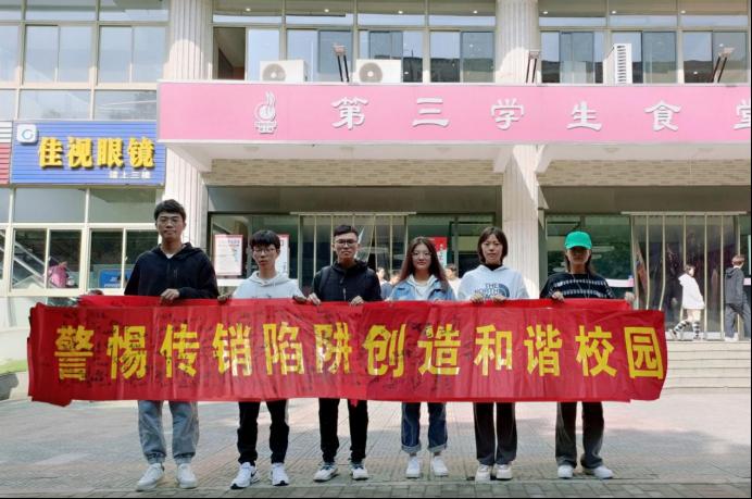 在活动前期线上线下广泛宣传的基础上,活动现场志愿者们以形式多样的方式向同学们介绍电信网络诈骗高发案件类型、危害与防范措施,并结合鲜明的案例进行说明。同学们听完理性消费、反诈防贷的宣讲后自发主动地在横幅上签名。