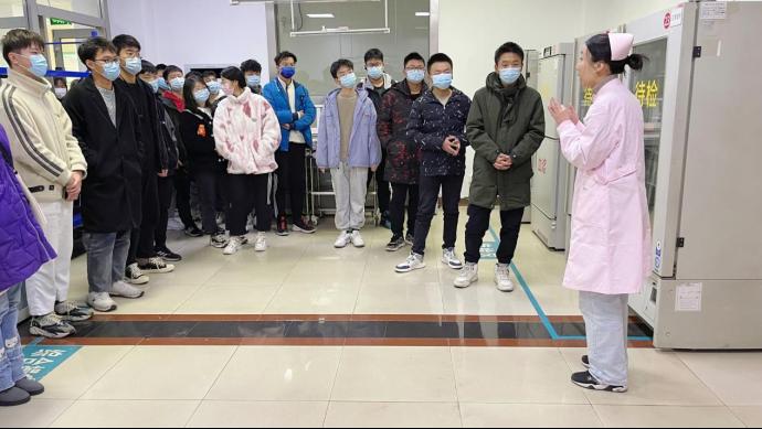 活动前夕,青协在各班级内积极宣传了此次活动,并向同学们普及了献血相关知识以及其蕴含的重要意义。了解参观须知后,献血站的工作人员热情地带领同学们参观了献血的相关器材和处理血液的相关科室,并向同学们介绍了保存血液的恒温箱和分离血液成分的离心机。随后,工作人员还向同学们普及了献血的注意事项和适宜献血人群,讲解过程中同学们紧跟工作人员的思路,认真听讲,积极提问,在整个参观过程中,与工作人员相处融洽,互动频繁。