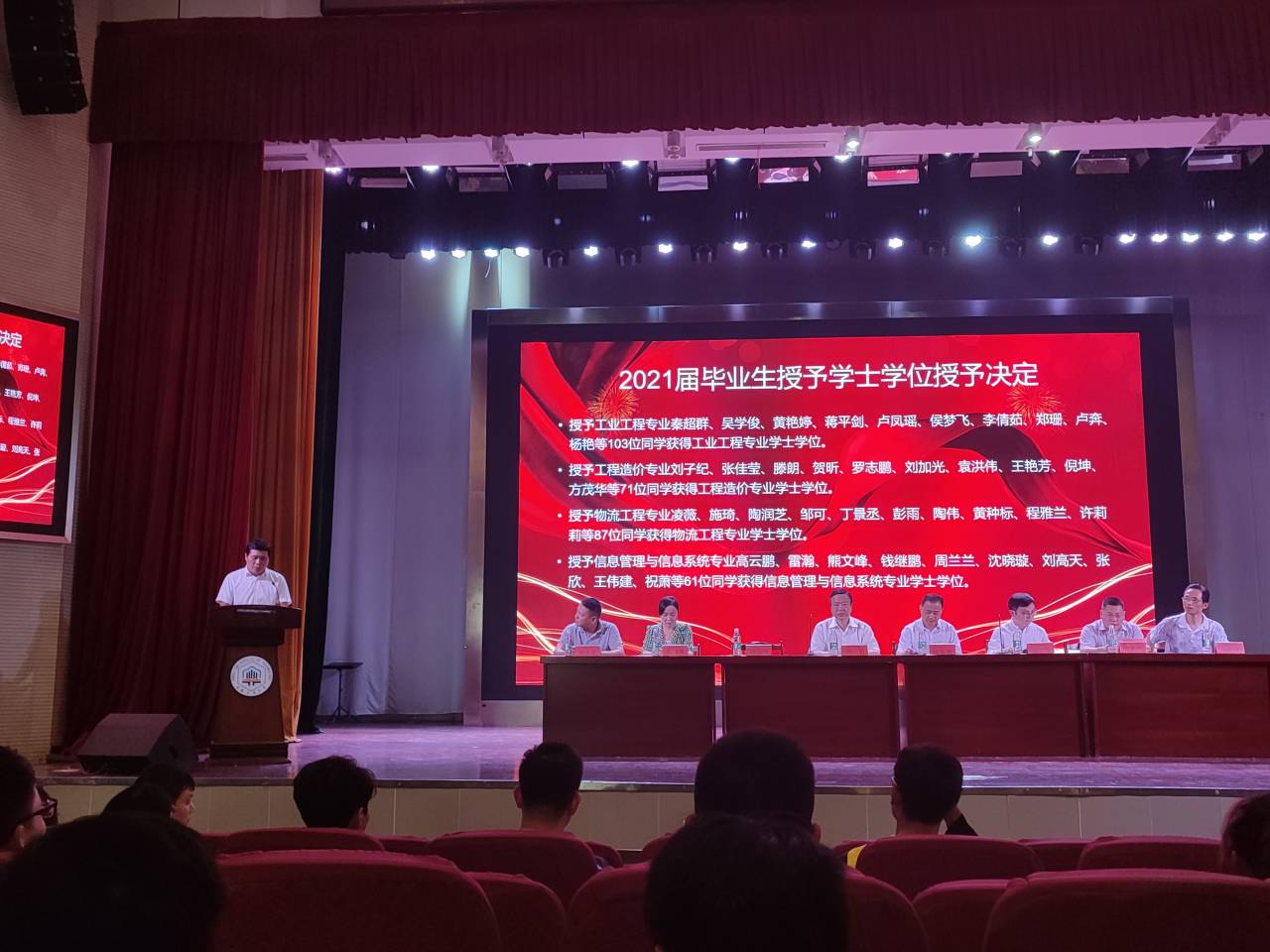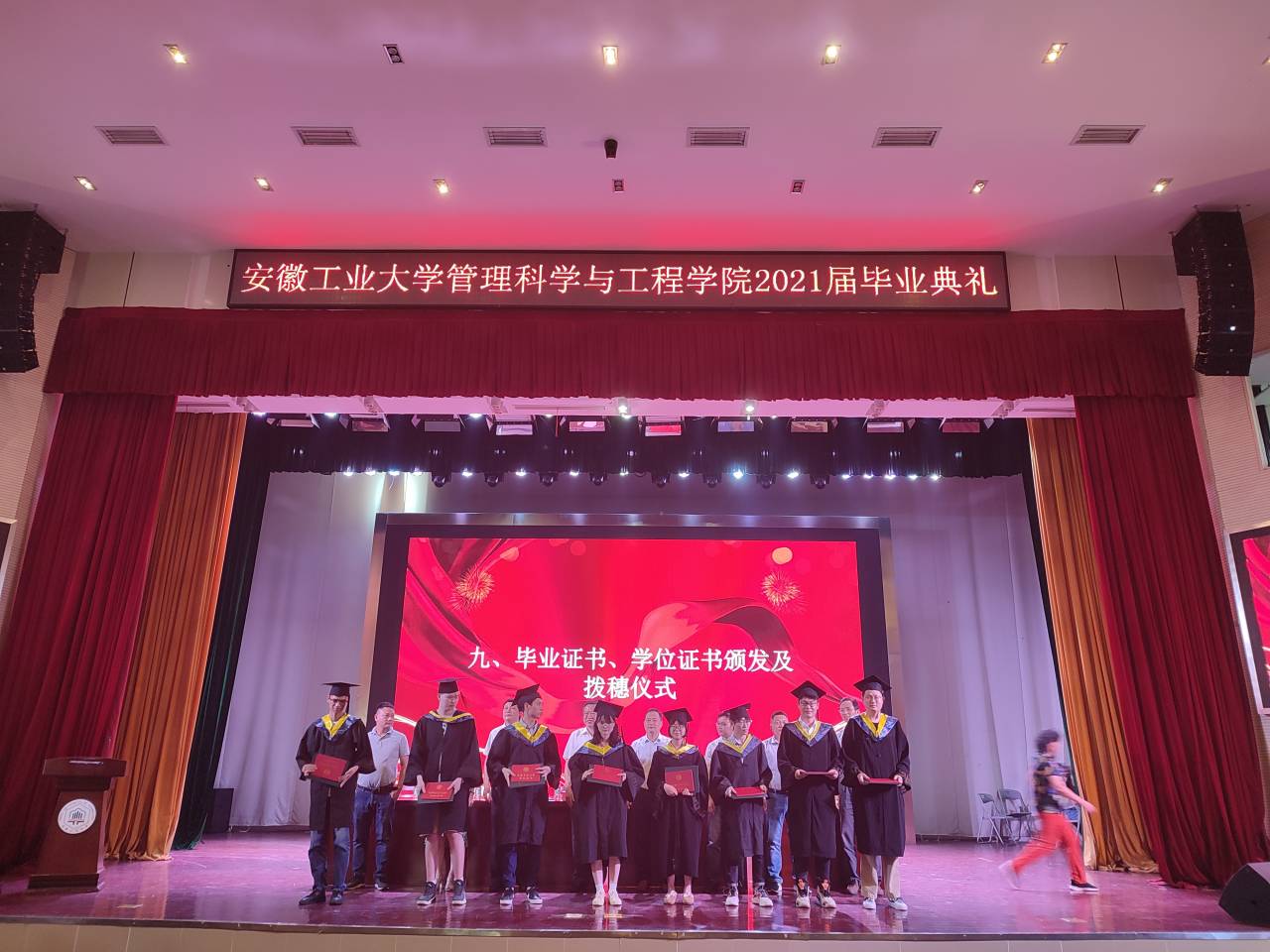 典礼在庄严的国歌声中拉开帷幕。经理汪和平宣读毕业生和拟授予学位名单并致辞。他重温了2021届毕业生在四年中取得的点滴成绩并寄语三点希望:要志存高远,有坚定的理想;要与时俱进,持续地学习;要无畏挫折,乐观地坚持。
