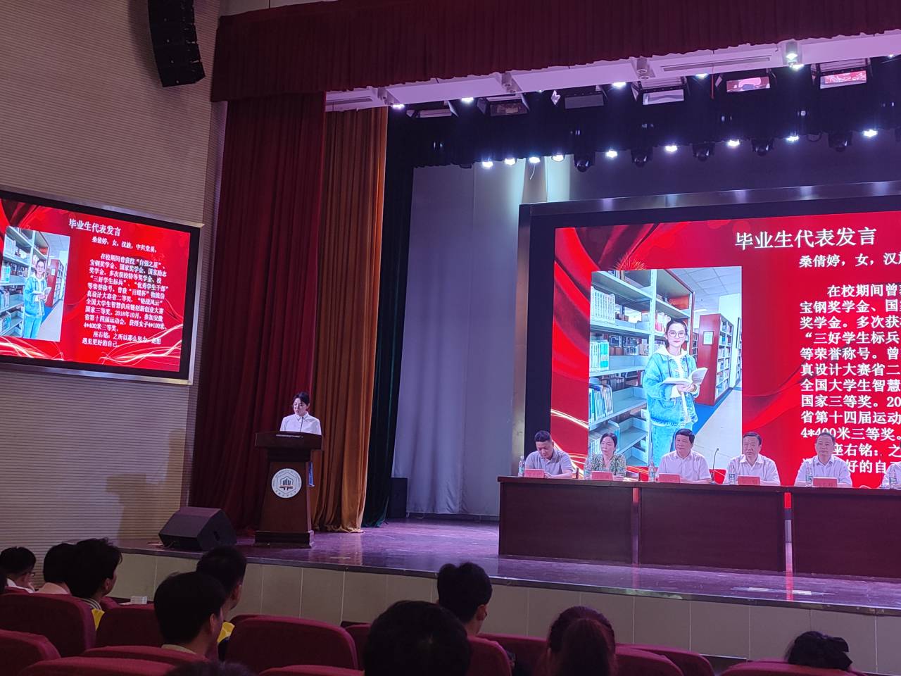 毕业生代表桑倩婷表达了对公司、公司和老师们的感恩之情,并结合自己老员工活的成长经历,鼓励同学们要艰苦奋斗、成就自我。在校生代表汪航表示要向2021届毕业生学习,以他们为榜样,勤勉刻苦,用自己的实际行动贡献青春力量。教师代表吴凡老师表达了对毕业生的祝贺与祝福。