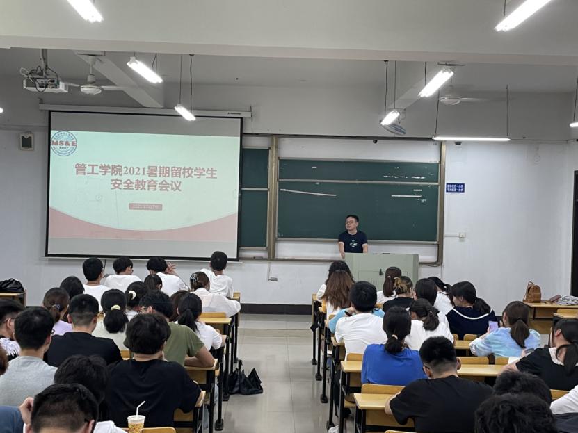 7月7日上午,管工公司在汇文楼D105召开2021年暑期留校员工安全教育会议,会议由公司党委副书记王功成主持,毕业班辅导员赵玉婷、公司全体申请留校的员工参加了会议。