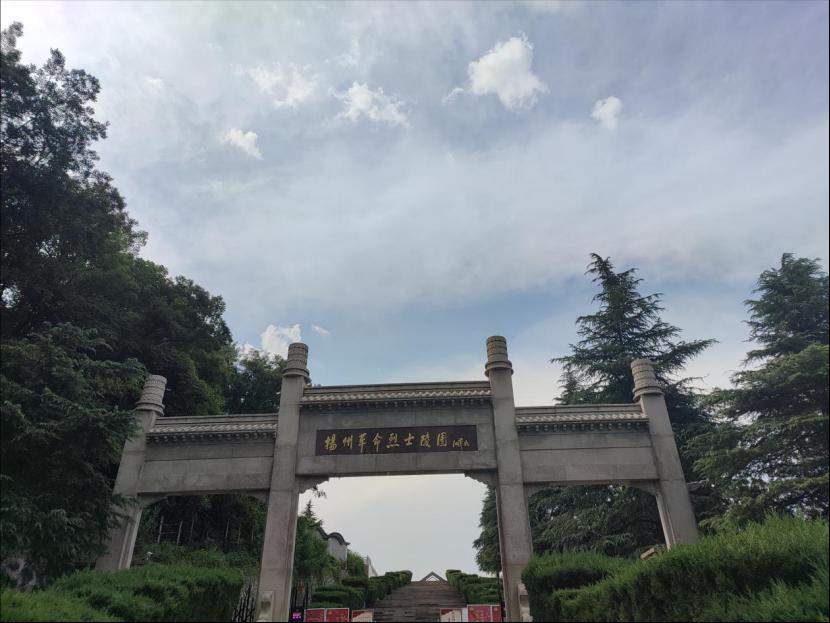 实践队员们来到烈士陵园,站在入口牌楼前,抬头便看见上面镌刻着江泽民总书记亲笔题写“扬州革命烈士陵园”八个金光闪闪的大字。沿着两旁苍劲的雪松围绕着的道路拾阶而上,远远便望见那一幢庄严肃穆的黑灰建筑,前所未有的庄严感充斥着每一寸天空,每一丝呼吸。穿行过一幕幕石碑,矗立着一座又一座栩栩如生的雕像,石碑上雕刻着自辛亥革命时期到新中国成立前后前仆后继保卫国家的烈士英雄们:骆何民、成贻宾、熊成基、江上青、许晓轩、韦一平、孙子明……他们头戴红五星帽,眉头紧锁、眼神坚毅地怒视敌人。转过身又见一幅雕塑,手戴镣铐的革命儿女们宁死不屈,大声呵斥着敌人:“你们杀了我,还有千千万万中华儿女,休想夺走我们的领土!”这跨越近百年的呼喊,历经多少风雨洗礼,仍清晰有力地回荡在纪念碑上空。
