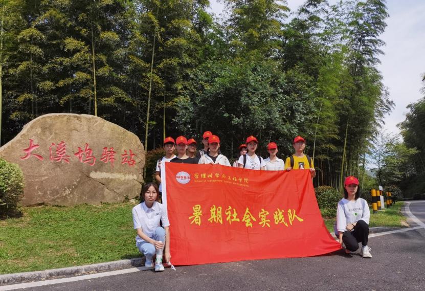 2019年,颂祥村获得市级“美丽乡村”荣誉称号。据悉,颂祥村致力于将生态、休闲、旅游、文化等元素植入到美丽乡村建设中,全力打造“美丽乡村升级版”。为深入了解东亭乡的发展现状及难点,实践队一行紧接着奔赴至颂祥村,在村党群便民服务中心与该村党总支书记王俏面对面进行了一番交流。在交谈中实践团队了解到,颂祥村结合自身的村域特色,打造了生态宜居的徽式美丽乡村,吸引了广大游客前往参观。此外,当地党员干部普遍觉悟较高,牢记党员义务,发展党建文化,在颂祥村的诸多旅游景点中都融入了党建特色,最终形成了一条独树一帜的“党风旅游路”。据王俏书记介绍,在每周的周末颂祥村都会迎来大批量来自江浙沪的游客参观游玩。“来我们村游玩的人数倒是很多,但是我们村的民宿和农家乐很少,旅客没有住的地方,因此来旅游的人大多都是看一看玩一玩就走了,留不住人,这是我们村目前一个很大的问题。” 王俏说道。据此,实践队员与指导老师向王俏书记提出建议,尝试能否以宣讲形式向村民宣传“游客落脚地”对于颂祥村经济发展的重要意义,鼓励村民自行建成民宿,农家院等。王俏书记表示将仔细考虑以后续实施。