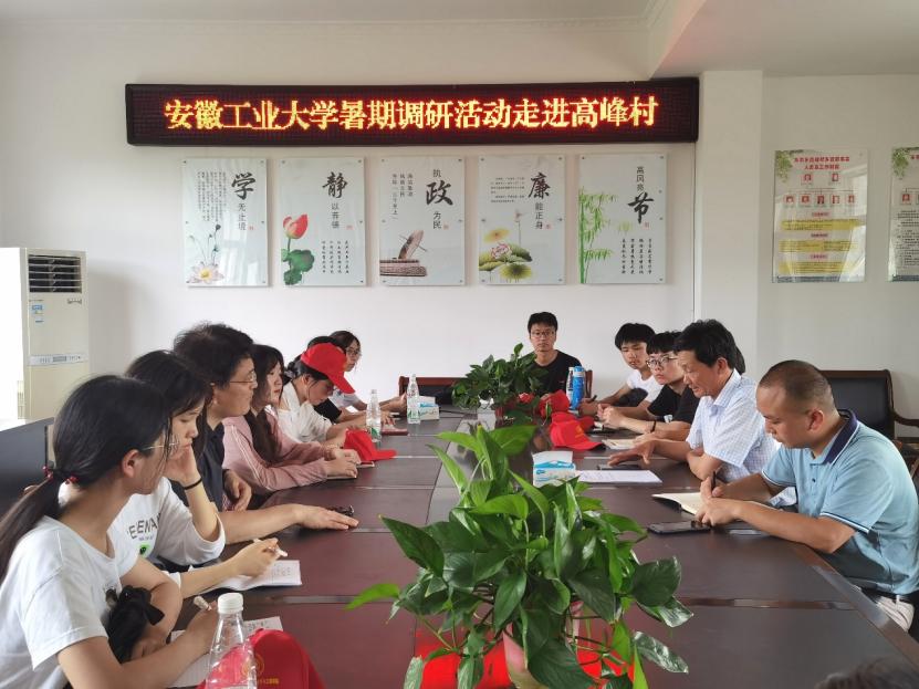 图为实践队员来到高峰村与王书记进行交谈