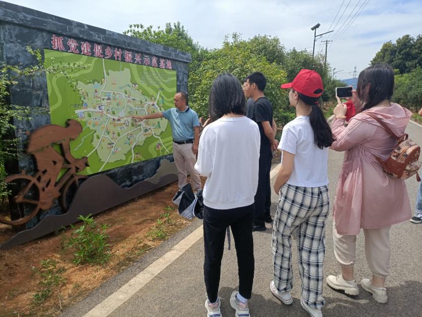 图为东亭乡人民政府工作人员为实践队员讲解本地乡村振兴的发展规划
