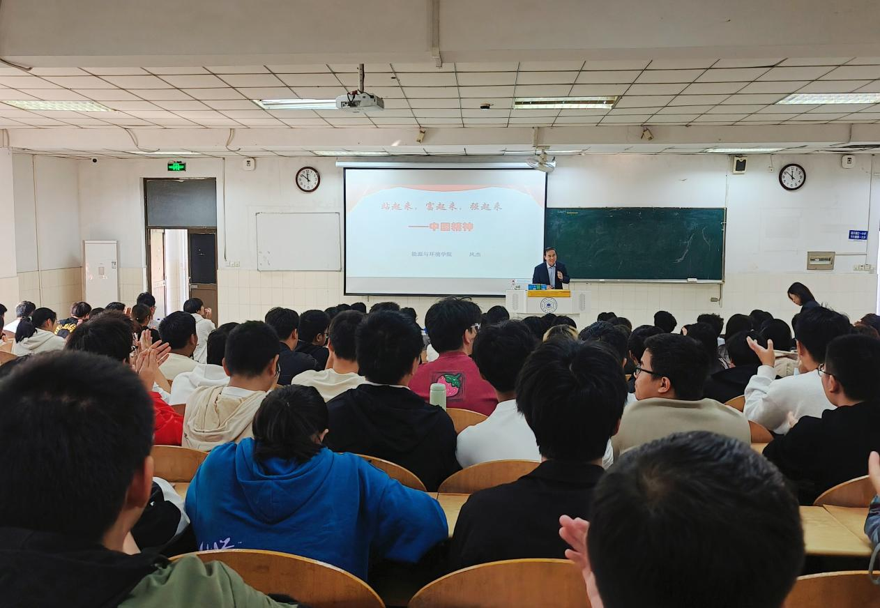 凤杰老师带领新生回顾中华人民共和国从“站起来”到“富起来”再到“强起来”这一伟大历史进程,让同学们深刻感受到了党的伟大与坚韧,深刻认识到党在中华民族伟大复兴进程中的中流砥柱作用。同时,凤杰老师提出,作为新时代的青年员工,一是要树立正确的世界观、人生观和价值观,不断提升自己的综合素质和创新能力;二是在新时代下继续传承和发扬爱国精神,要心系国家、心系人民,积极投身社会实践和志愿服务活动。价243班周婉晴表示:“凤杰老师讲课生动形象,通过这堂课我深刻感受到作为新时代青年,我们肩负重任,也更加坚定了我向党组织靠拢、为人民服务的决心。”