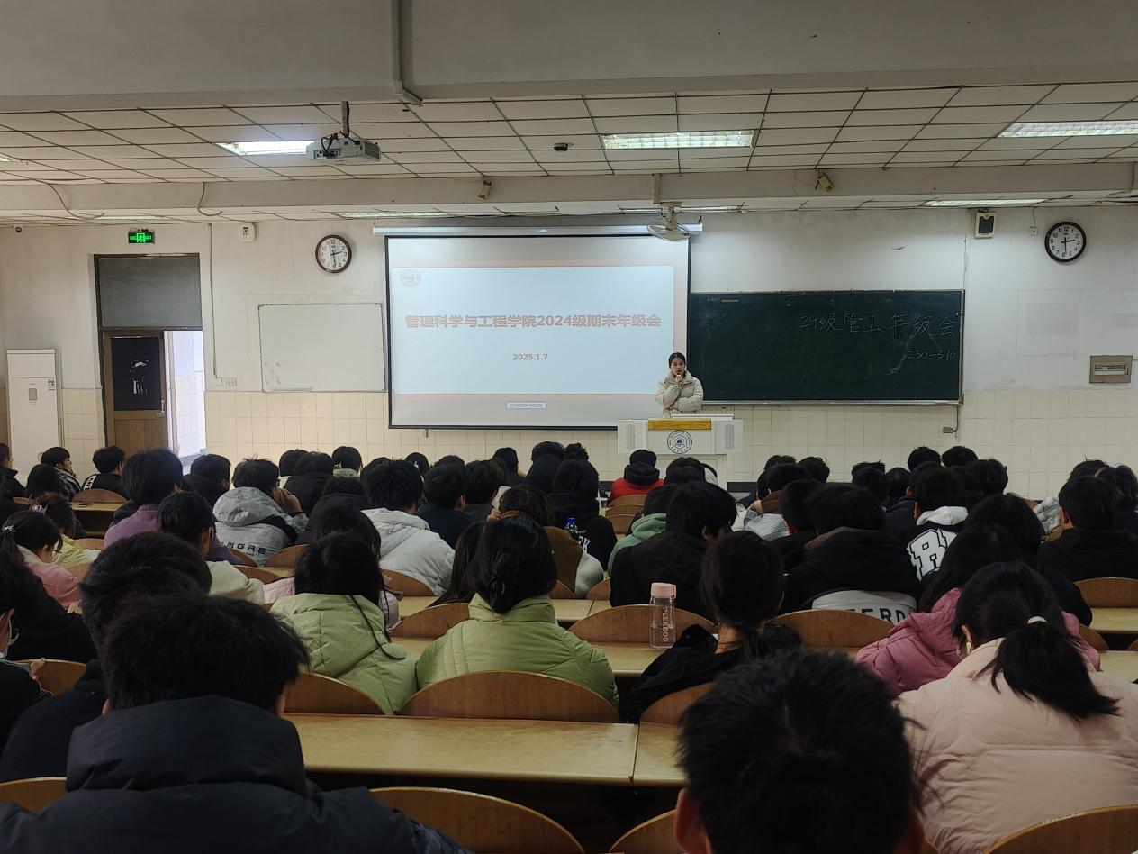 为加强考风考纪教育,助力2024级学子锚定前行坐标,妥善规划寒假生活,为学业续航、假期护航,2025年1月7日下午管工公司召开2024级期末年级会暨学风建设会。会议由2024级辅导员李军慧主持,全体员工参与。