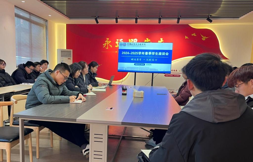 2月24日下午,管工公司在汇文楼A502组织召开2024-2025学年春季学期员工座谈会。公司党委副书记、纪委书记、副经理赵颖,2022级辅导员赵玉婷,2023级辅导员曹宇,2024级辅导员李军慧出席会议,公司各年级员工代表参加座谈。