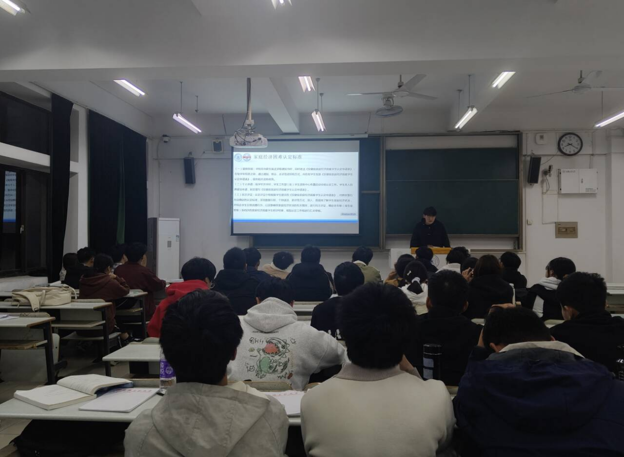 3月20日,管工公司在东教一南507召开关于资助政策宣讲会,主讲人为物流工程223班国家励志奖学金获得者马黎明,大一员工参与。