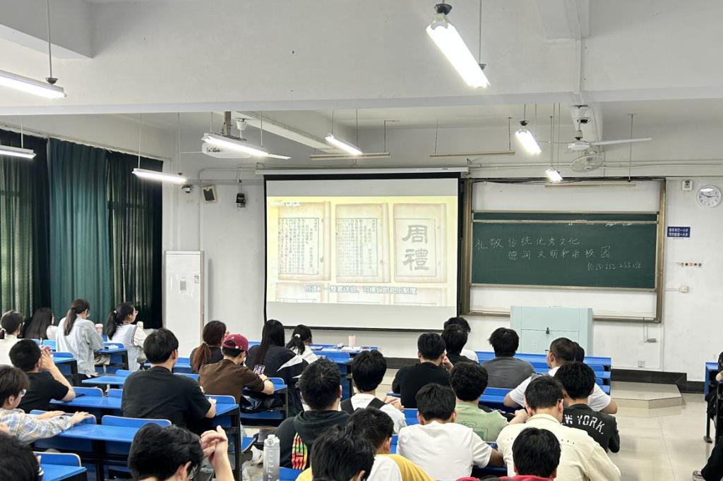 活动期间,各班团支书化身“礼仪宣讲员”,借助PPT多媒体演示,结合“课堂互动、宿舍相处、社团活动时的礼仪规范”“文明就餐”等校园生活中的具体案例,系统阐释礼貌、礼节、礼仪的内涵与现实意义,深入剖析了文明习惯对个人修养、人际交往及社会和谐的重要性。为深化教育效果,班会特别设置“礼仪影像课堂”环节,精选礼仪规范纪录片、校园礼仪微短剧等视频素材,内容从传统礼仪典故延伸至校园文明实践,通过具体场景演示礼貌用语、社交礼节和公共礼仪规范,引导员工沉浸式感受礼仪文化魅力,深化教育共鸣。会后,同学们探讨如何将“讲礼貌·守礼节·懂礼仪”融入学习生活,纷纷表示将努力践行文明礼仪。
