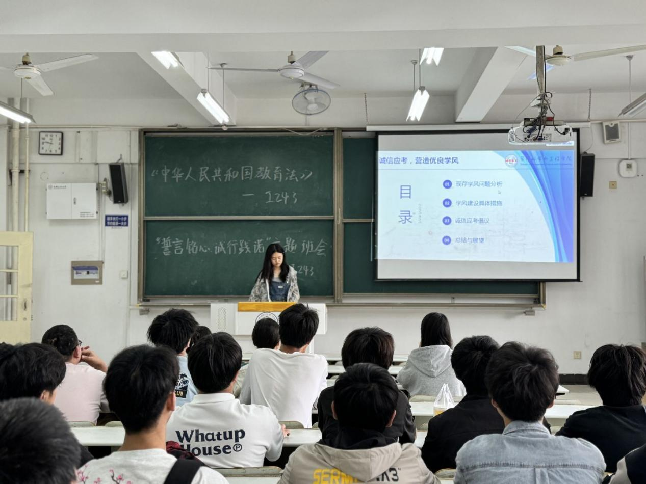 活动期间,各班学习委员通过PPT向同学们展示了当前学风存在的问题,包括“作业抄袭”“夹带小抄”“考试携带手机”等现象,以及这些行为所带来的不良影响与后果。同时,各班学委引导班级成员学习了《中华人民共和国教育法》、《普通高等公司员工管理规定》的部分章节内容,帮助同学们深入了解相关行为的法律条款,进一步强调了诚信考试的重要性。此外,部分班级通过“明辨真伪、智启诚信”知识竞赛对同学们所学知识进行了巩固与检验。会后,全体同学庄严地进行了诚信考试承诺宣誓,并签署了诚信承诺书,一致表示将通过实际行动展现自己遵守考试纪律、诚信应考的坚定决心。