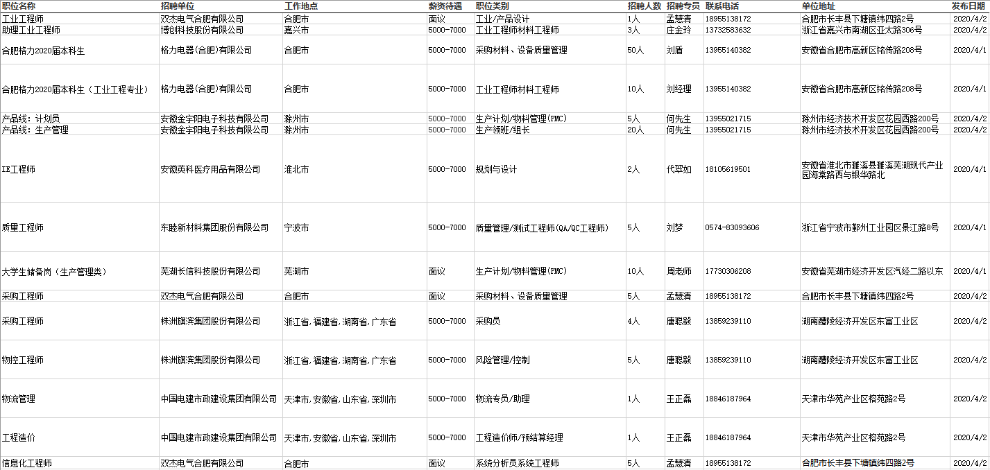 【就业一线】4月3日-4月5日就业信息更新