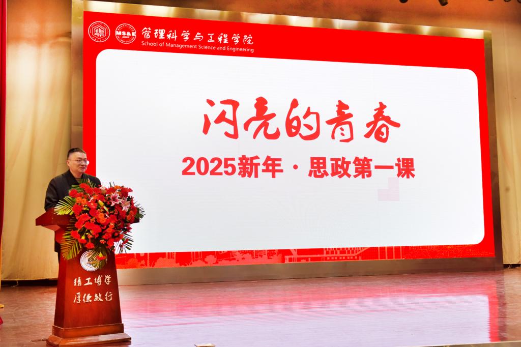 公司党委书记王军讲授2025新年·思政第一课。王军在讲话中回顾了一年来公司在学术交流、教学科研、人才招聘、育人实践等方面取得的成绩,向受到表彰的先进集体和个人表示祝贺,号召全体同学以受表彰的先进集体和个人为榜样,在工大求真学问、练真本领,锤炼敏锐的洞察力和活跃的创新思维,努力成长为引领未来的卓越人才。他围绕“我们青春的奋斗到底在哪里?”对青年提出四个奋斗方向:一是要在仰望星空中立大志,升华人生境界,实现人生价值;二是要在至诚至善中明大德,坚持自立自律,守望精神家园;三是要在厚学笃行中成大才,矢志知行合一,追求经世致用;四是要在立定脚跟中担大任,静观世界风云,勇立时代潮头。王军寄语同学们要秉持立大志、明大德、成大才、担大任的青年先锋精神,踏上奋斗之路,绽放理想之花,成就属于自己的美好未来!