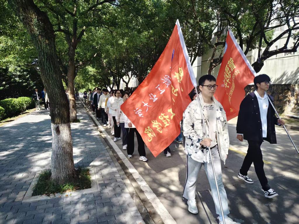 “模拟长征”活动开始前,全体党员发展对象集体朗诵《七律·长征》。支部书记代表杨恒基围绕“承长征薪火,赴青春之约”主题讲授党课,勉励青年学子要不忘初心、筑牢信念根基,在三个方面持续发力:一是深化政治理论学习,二是积极投身社会实践,三是传承弘扬长征精神。随后,全体师生从校园出发,用脚步丈量土地,以整齐的队伍向着目标坚定迈进,历经2小时的徒步,抵达目的地。本次“模拟长征”活动让师生感受到了伟大“长征精神”的熏陶洗礼,切身体会到了“征途漫漫,惟有奋斗”的时代含义。