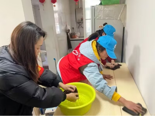 实践过程中,志愿者们随社区工作人员入户帮助独居老人打扫卫生,收拾房屋,让家中焕然一新,为老人们传递一份温情。