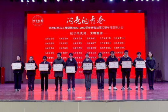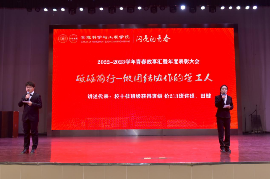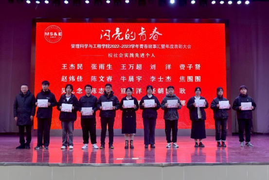 12月25日晚,公司举行2022-2023学年青春故事汇暨年度表彰大会,公司党委宣传部副部长、校团委书记王菁、员工工作部(处)部长赵龙、研究生院、团委、教务处等相关职能部门负责人,管工公司党政领导班子、系室主任、教师代表、班主任代表以及全体辅导员、受表彰的先进集体和先进个人及各年级员工代表共400余人参加大会。表彰大会由公司党委副书记、副经理、纪委书记赵颖、2021级辅导员任静、工业工程203班王枫主持。