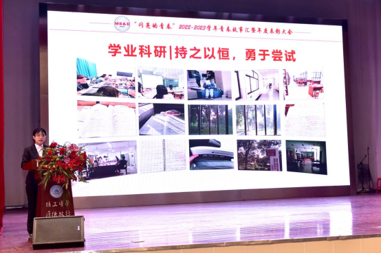 聚焦卓越与优秀,学习榜样树先锋。全国无偿捐献造血干细胞奉献奖获得者2020届员工代表操礼春分享了自己求学之旅以及捐献造血干细胞的经历,鼓励学弟学妹们,牢记习近平总书记的殷殷嘱托,在以中国式现代化全面推进中华民族伟大复兴的征程中坚定理想信念,厚植家国情怀。校第26届研究生支教团团长物流203班李嘉懿分享了自己的大学时光及成长中的突破与磨砺;第18届挑战杯国家一等奖获得者造价202班邓祖星、物流202班陈磊享了彼此成长进步路上的点滴故事,向大家讲述了获奖的经验;国家奖学金获得者物流202班王莞君从学业科研、员工工作、生活、志愿实践四个方面展示了自己的保研经历;校“十佳班级”获得者造价213班许谨、田健向大家讲述了班级的发展与建设成果。