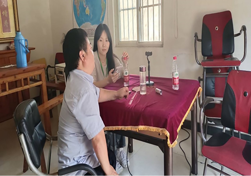 图为实践队员向村民提问有关兴圩村医疗卫生的问题。中国青年网通讯员 陶恒 摄