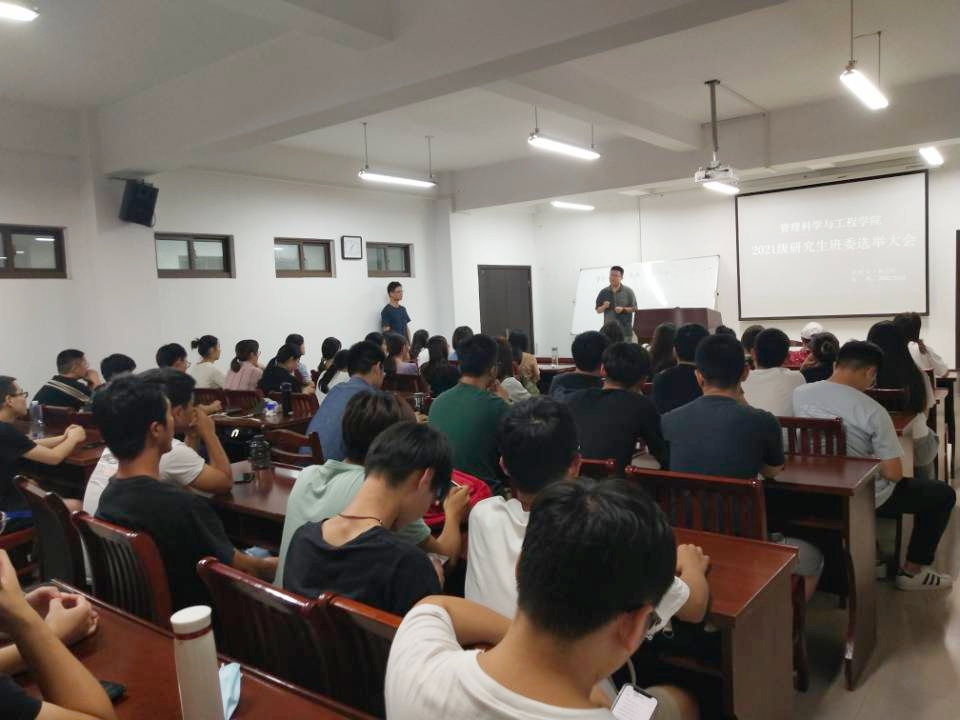 9月23日晚,管工公司在汇文楼A308召开2021级研究生班委选举大会,全体2021级研究生到会,20级班级负责人操礼春主持会议。