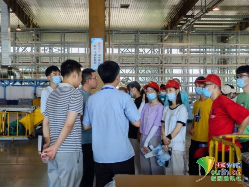 图为工作人员给实践队员介绍广德亚太公司。中国青年网通讯员 杨骏驰 摄