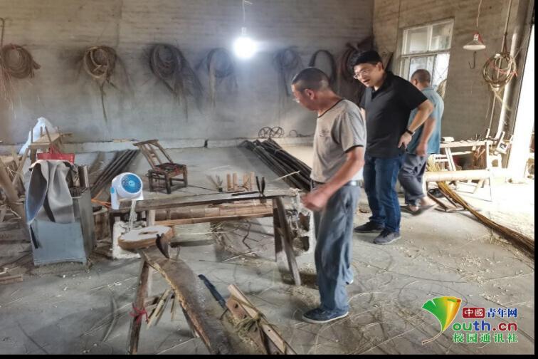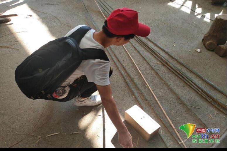 图为实践队员观察“破竹”工序时的竹子形态变化。中国青年网通讯员 江文静 供图