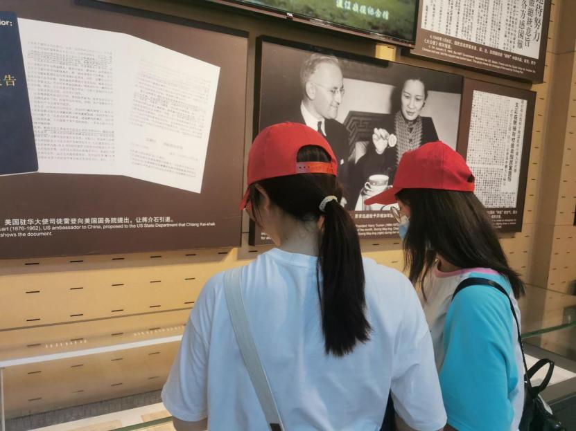图为实践队员在认真观看革命陈列物品。