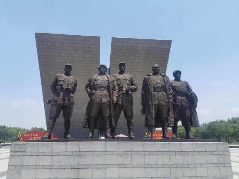 图为渡江战役纪念馆标志性建筑物总前委群雕。