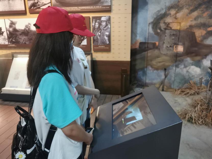 图为实践队成员在认真听讲解员讲解。