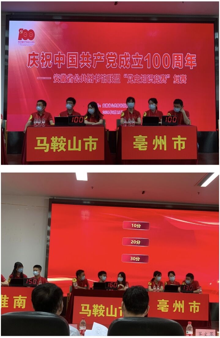6月19日,安徽省公共图书馆联盟庆祝中国共产党成立100周年党史知识竞赛决赛在安徽省图书馆举办,管工公司周子涵与另外两位参赛者代表马鞍山市参加此次比赛并获得团体三等奖。