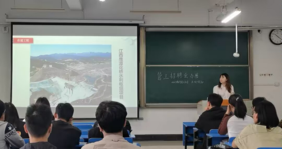 中国安能集团造价员罗娇详细介绍了公司的基本情况、发展历程、业务板块、前景规划等;工程局招聘主管周锁重点介绍了招聘岗位、职业发展、福利薪酬、招聘流程。宣讲结束后,两位宣讲人与同学们进行了深入交流,就同学们普遍关心的问题一一进行了解答。
