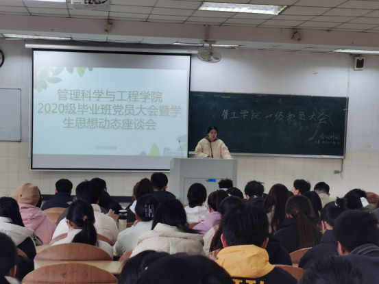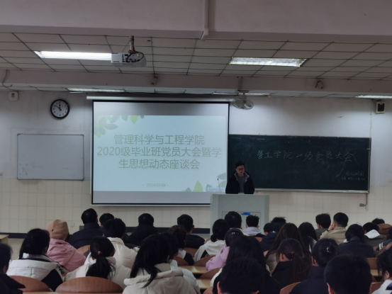 3月8日中午,管工公司在阶教101召开2020级毕业班党员“1+N”服务就业动员会。会议由2020级辅导员杨金星、李军慧主讲,2020级全体党员参与。